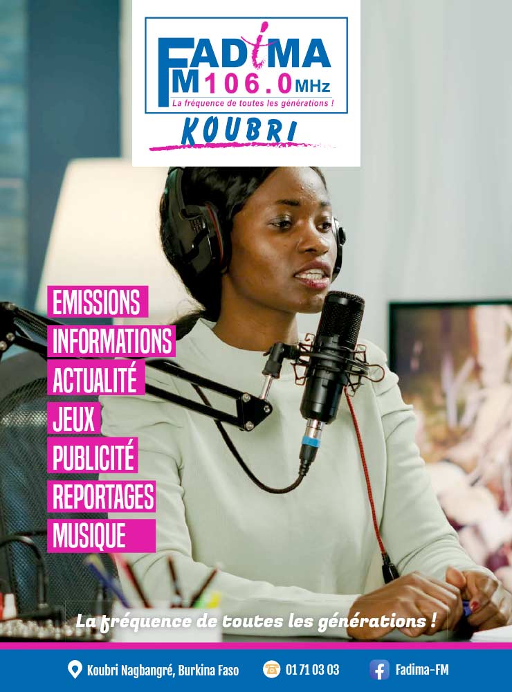 FADIMA FM est une radiodiffusion sonore privée à vocation associative appartenant au Groupe GA. Elle a lancé ses émissions le 15 Avril 2021 et émet sur la fréquence 106. 00 MHz.