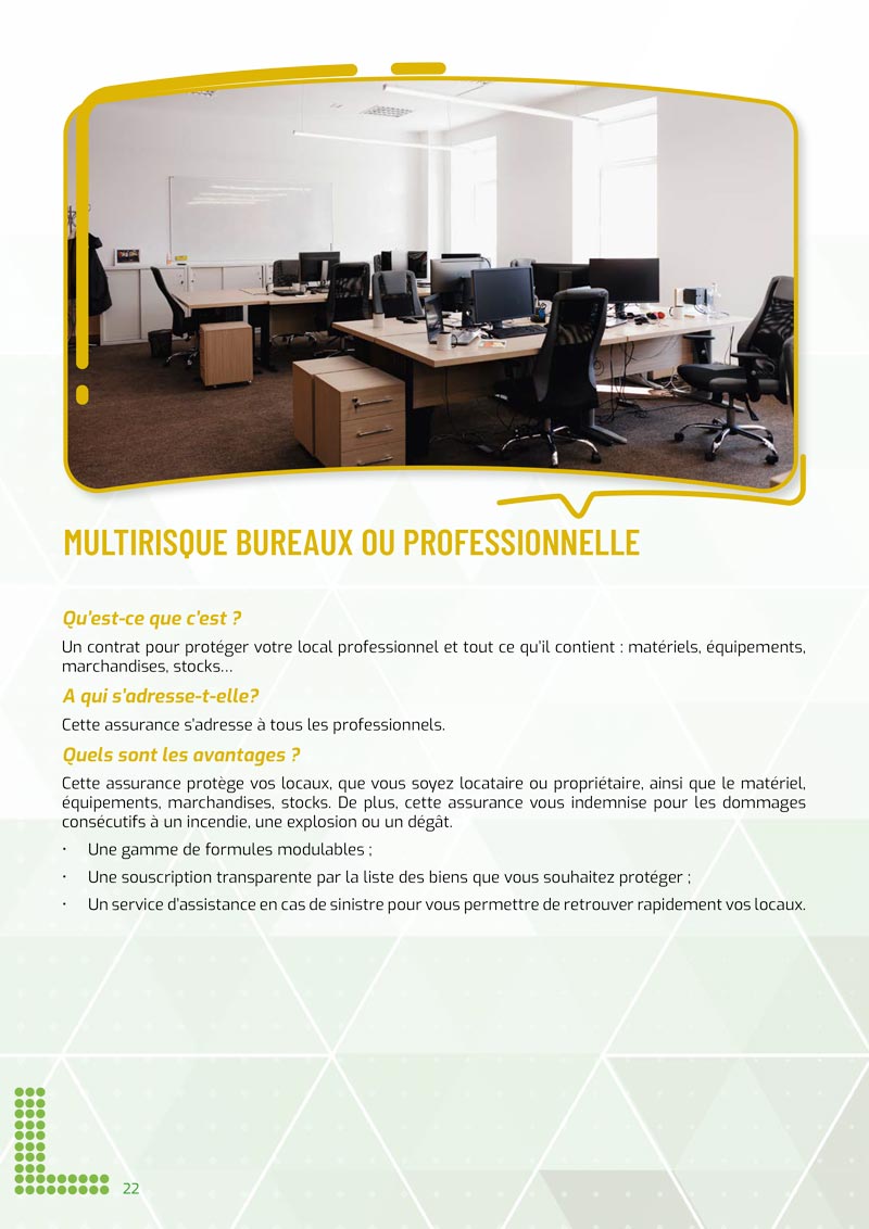 • Un service d’assistance en cas de sinistre pour vous permettre de retrouver rapidement vos locaux.